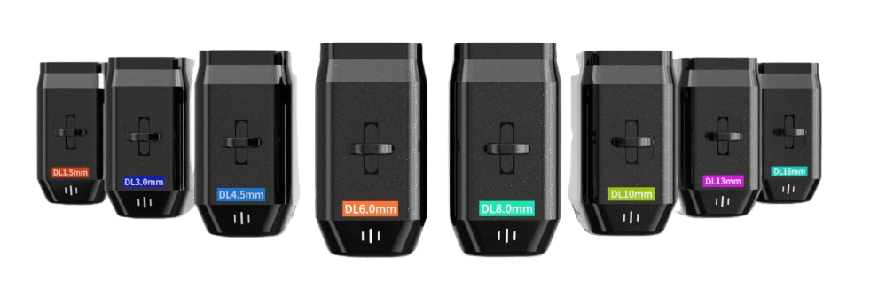 Het systeem Dynamic 3D wordt standaard geleverd met 3 cartridges : 1,5mm - 3,0 mm & 4,5 mm