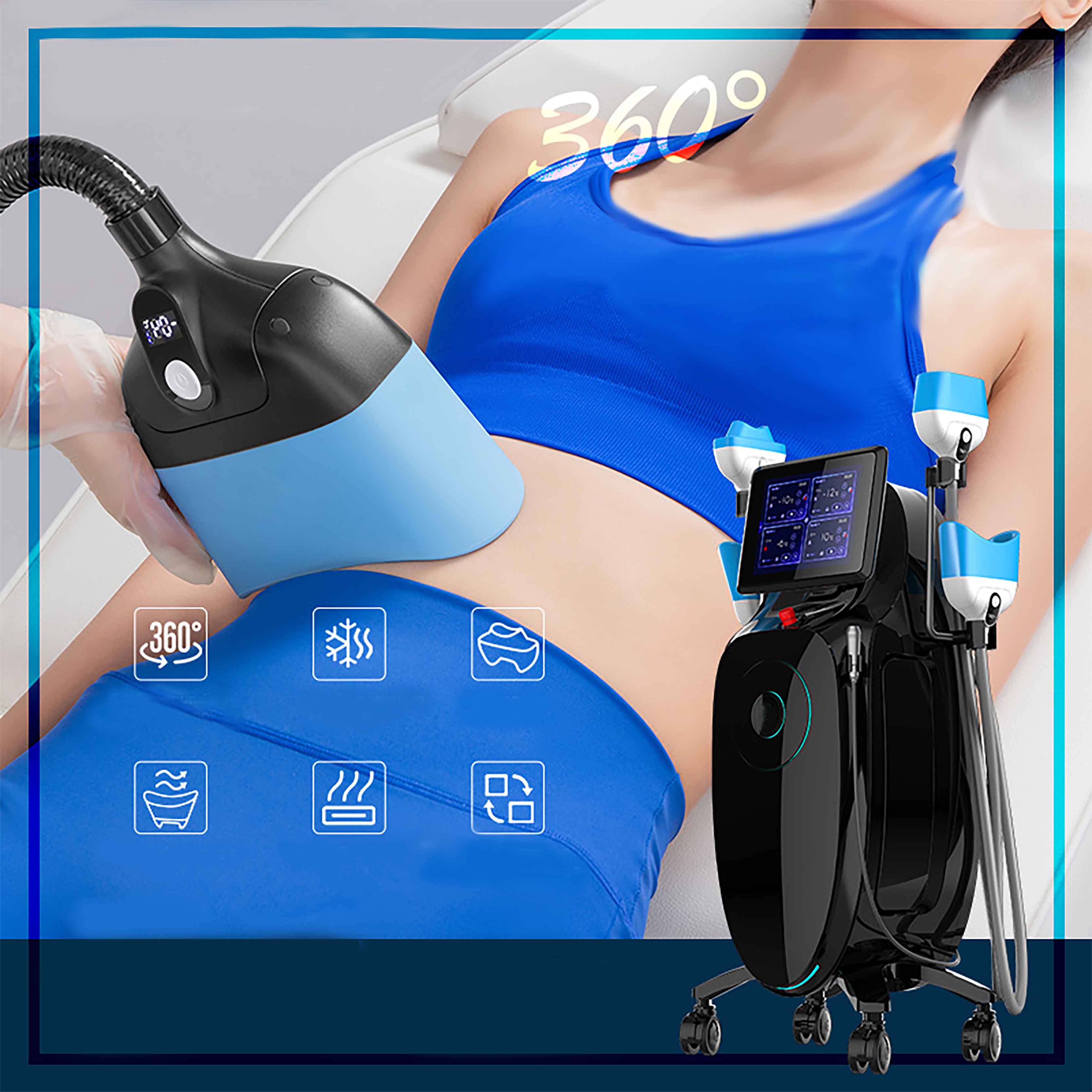 Het aparaat is voorzien van directe temperatuurmeting en touchscreen bediening op zowel het hoofdscherm als ook op de individuele handstukken. Het ingebouwde temperatuur koelsysteem zorgt voor een optimale en constante koeling.