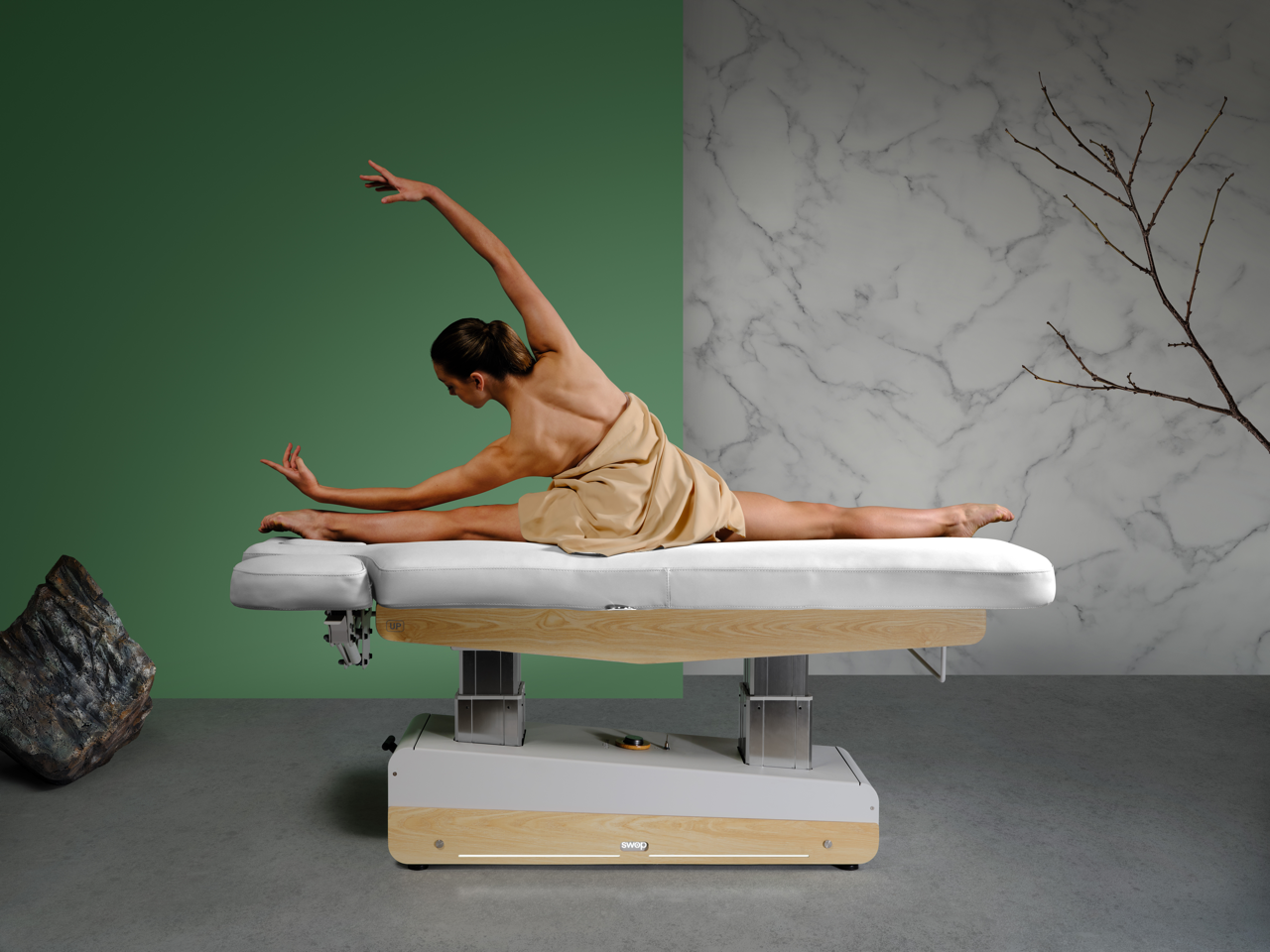 - Degelijke instelbare armleuningen met gaslift voor comfortabele ontspannen buikligging.