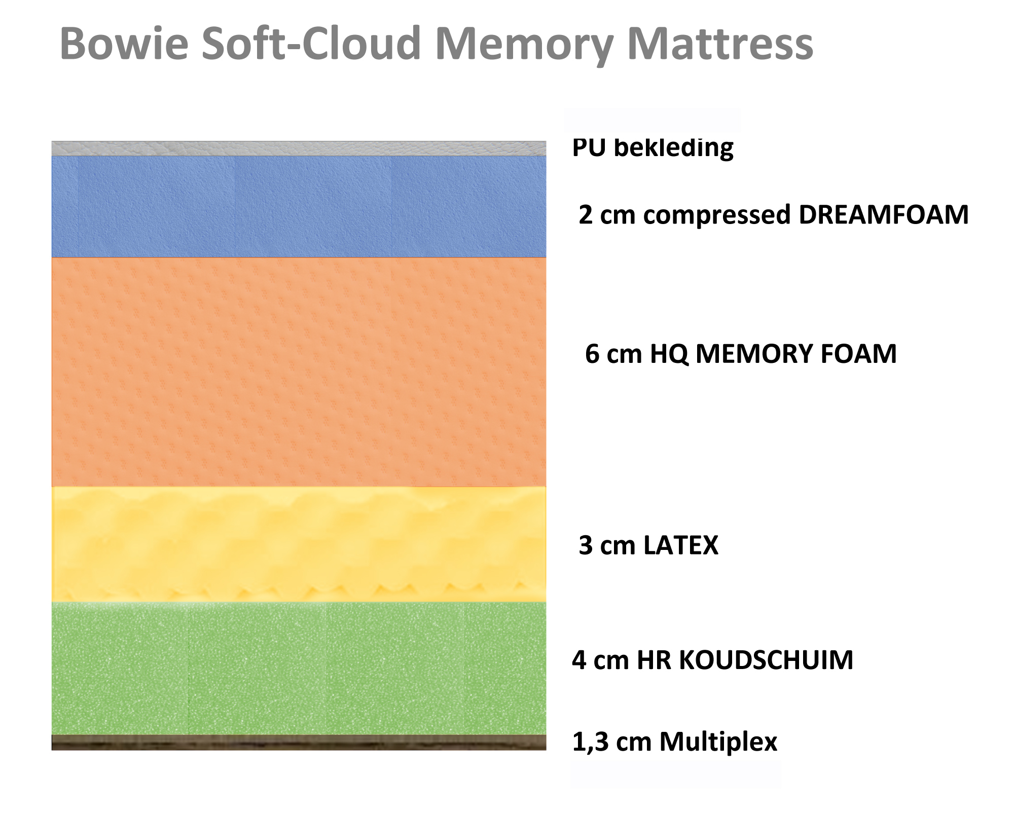 Uitvoering: Fraaie witte basis met licht grijs "Soft Cloud" matras